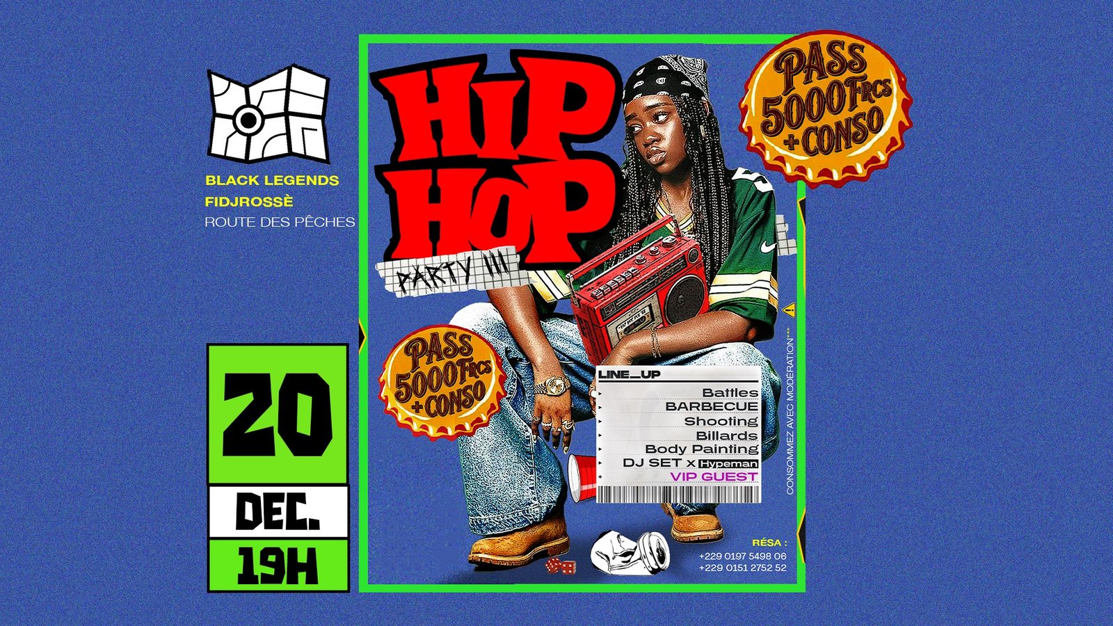 Le rendez-vous incontournable de la culture urbaine est de retour pour sa 3ème édition ! Le « HIP HOP PARTY » est l’événement qui réunit toute la jeunesse du rap au Bénin pour une nuit de vibes, de performances et de connexions. ⏰ Quand : Le 20 décembre à partir de 19h00 🎶 Quoi : Le meilleur du Rap Béninois, scène ouverte, et ambiance Hip Hop !